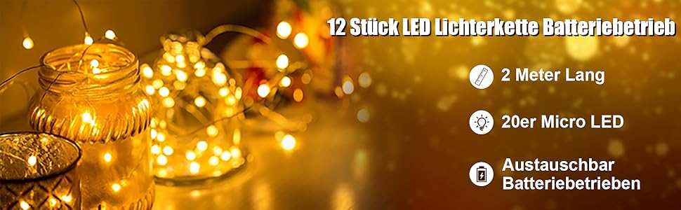 CREATESTAR Pack of 12 2 m LED Fairy Lights Battery, 20 LEDs